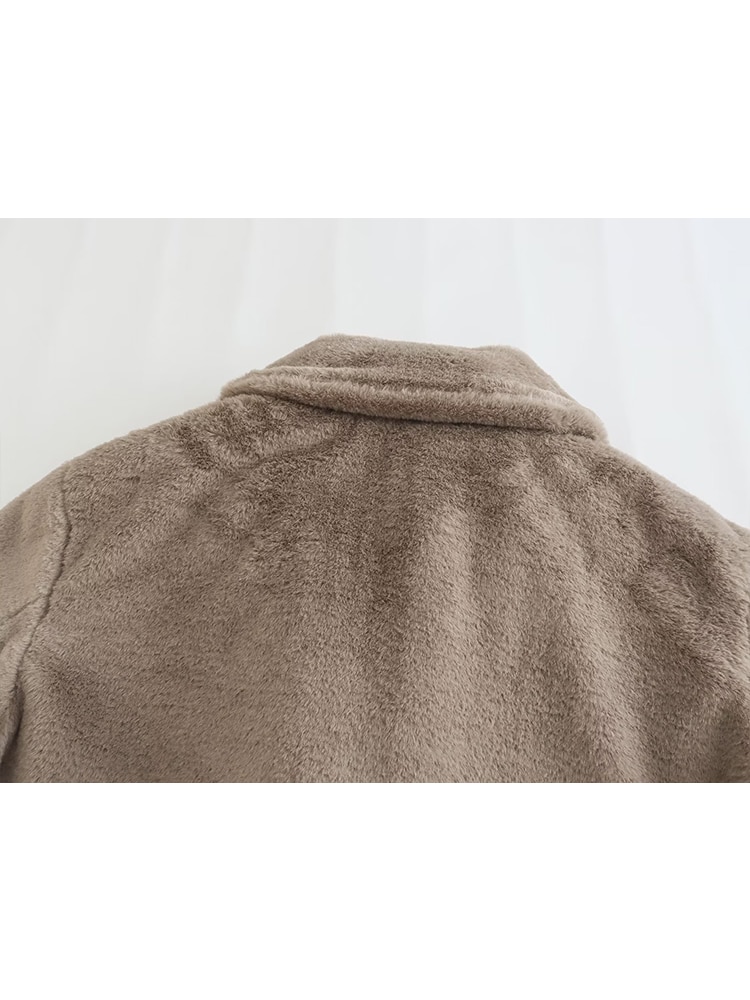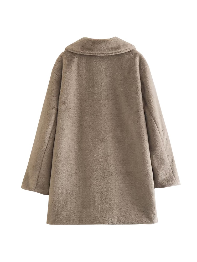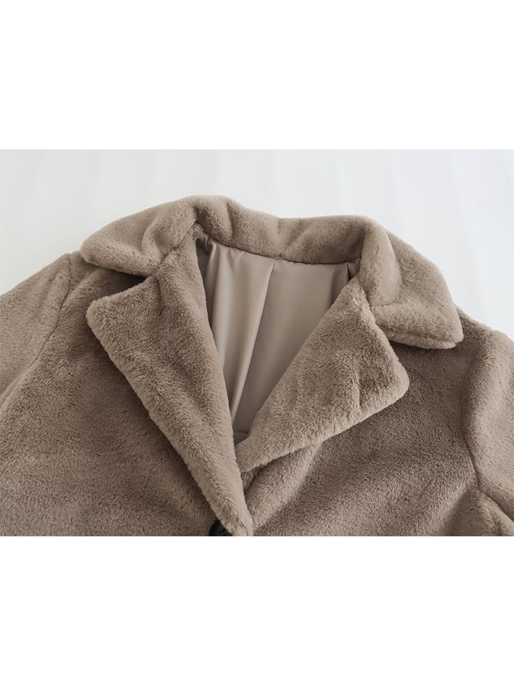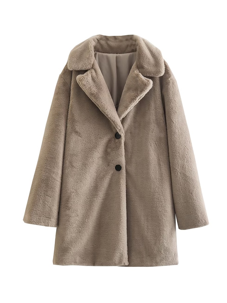 Manteau, d’hiver, long et chaud en fausse fourrure beige pour femme