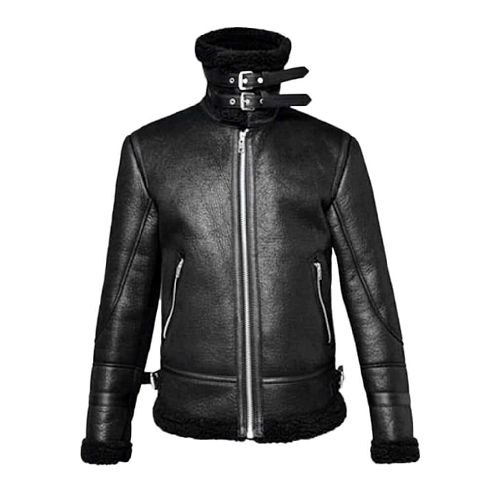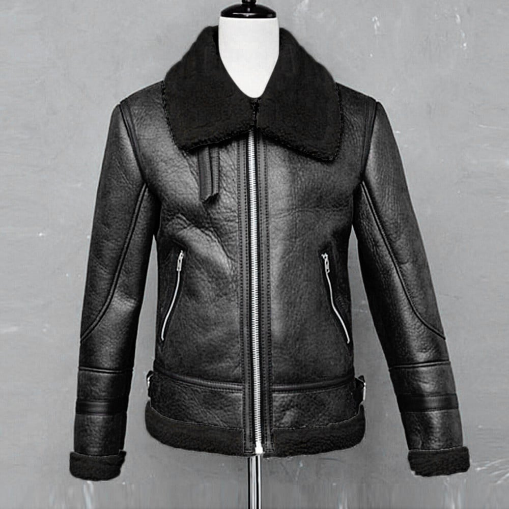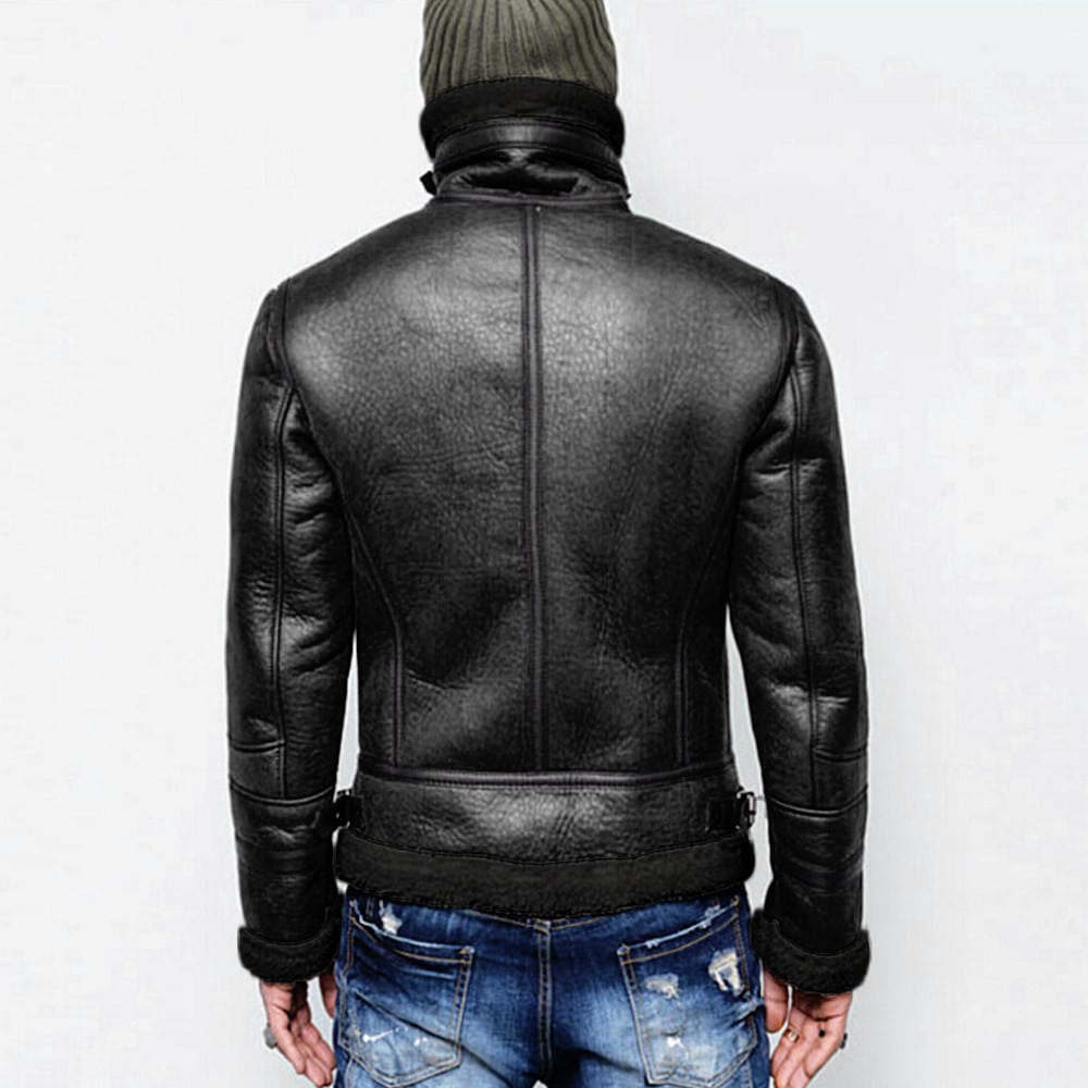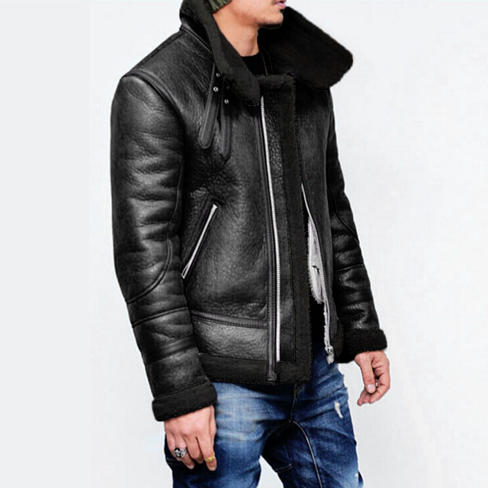 Manteau en faux cuir noir avec col à revers polaire pour hommes