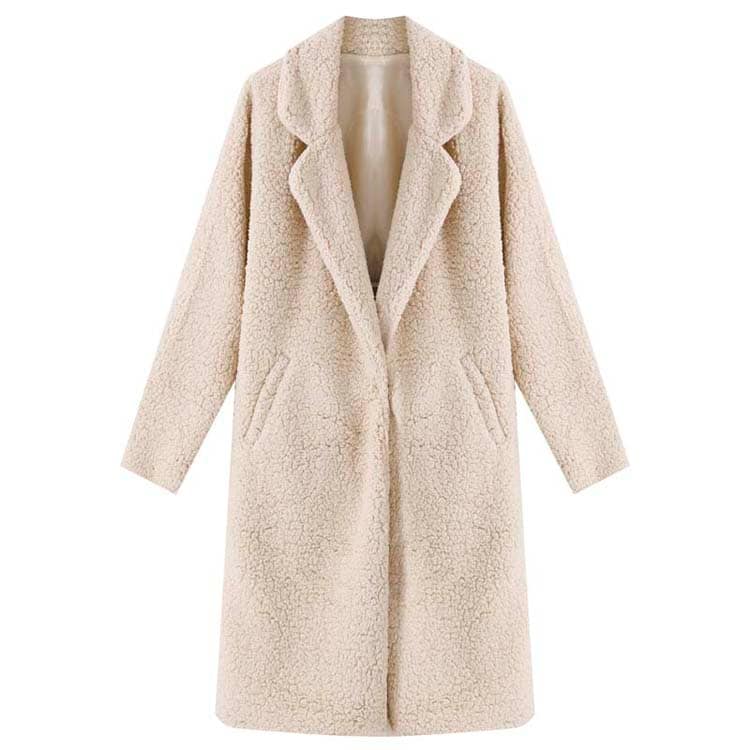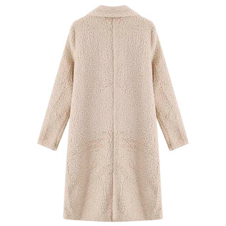 Manteau beige d’hiver, long en fausse fourrure pour femme