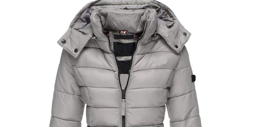 Manteau long d’hiver matelassé gris avec capuche pour femmes