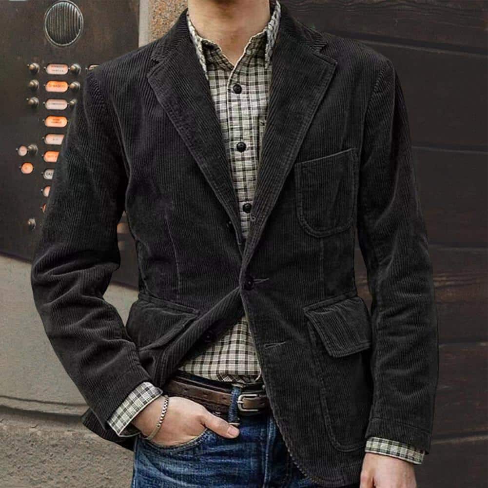 Voici le classique et élégant blazer simple boutonnage en velours côtelé pour hommes. Conçu avec un style intemporel parfait pour les occasions plus habillées, ce blazer est conçu pour faire un impact. Offrant un confort supérieur et un tissu luxueux, ce blazer présente un velours côtelé de qualité supérieure, doux au toucher. La fermeture frontale à simple boutonnage offre une allure polie tandis que les deux poches avant à jet offrent une élégance décontractée qui correspond à votre style personnel. Faites l’expérience d’un style élevé en toute occasion avec le blazer décontracté et élégant en velours côtelé à simple boutonnage pour hommes.