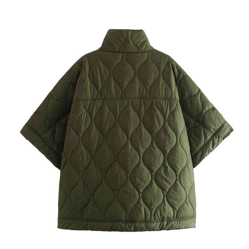 Manteau léger, manches courtes, matelassé vert kaki pour femme