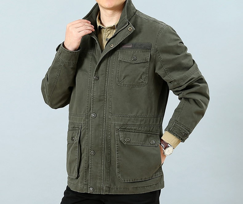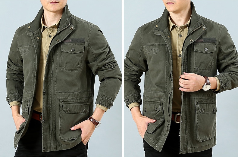 Voici le manteau cargo militaire décontracté vert mi-long avec col montant pour homme – une pièce idéale à ajouter à votre garde-robe. Ce manteau élégant présente une silhouette militaire classique et est conçu avec un confort ultime à l’esprit. Fabriqué à partir de matériaux de première qualité et impeccablement cousu à la main, cette pièce intemporelle est sûre de devenir un favori pour les années à venir. Doté d’une longueur moyenne, de quatre poches et d’un col montant, ce manteau cargo est parfait pour les occasions formelles et décontractées. La teinte vert olive ne se démodera jamais et ajoutera certainement un air de sophistication à tout ensemble. Que vous sortiez pour une soirée en ville ou pour un look plus sombre au bureau, ce manteau vous aidera à vous démarquer de la foule. De plus, sa construction de qualité supérieure vous garantit qu’il durera saison après saison, restant aussi pratique que jamais tout en conservant son côté sophistiqué.