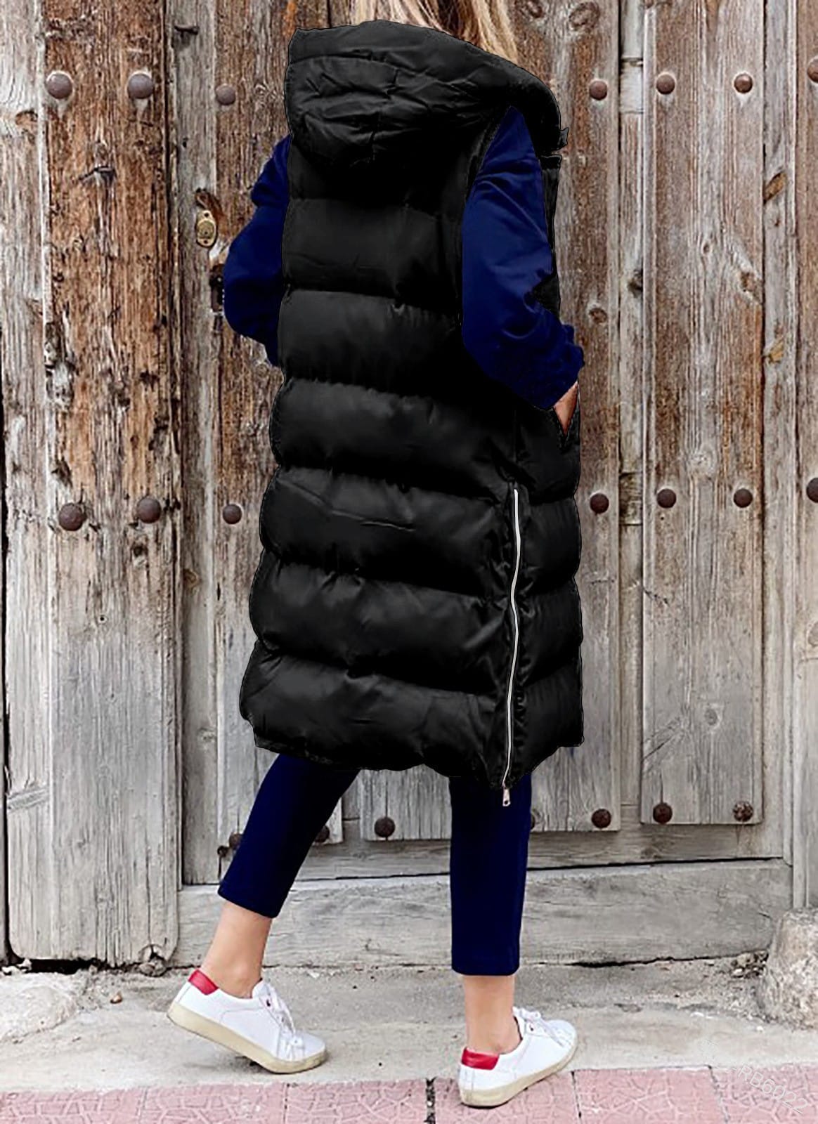 Voici le manteau matelassé sans manches pour femmes ! Ce must-have à la mode est un moyen parfait de rester au chaud et élégant pendant les mois d’hiver. Avec sa longueur et son design sans manches, il est flatteur mais pratique – vous n’avez pas à vous inquiéter de compromettre votre style lorsque la température baisse. Le tissu matelassé fournit une couche supplémentaire d’isolation, vous gardant super confortable tout au long de la saison. Et avec une capuche attachée, vous n’avez pas besoin d’un chapeau supplémentaire qui doit être ajusté ou enlevé tout au long de la journée ! La couleur noire élégante est classique et intemporelle et s’associe à presque toutes les tenues pour que vous n’ayez pas à sacrifier votre look. Vous méritez de vous sentir à l’aise tout en restant chic, et c’est exactement ce que vous offre ce long manteau matelassé sans manches. Accessoirisez dès aujourd’hui avec cet essentiel de la saison !