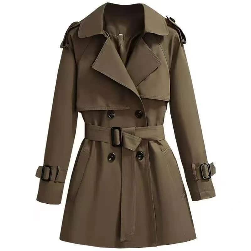 Trench-Coat mi-long marron à col rabattu et ceinture pour femme
