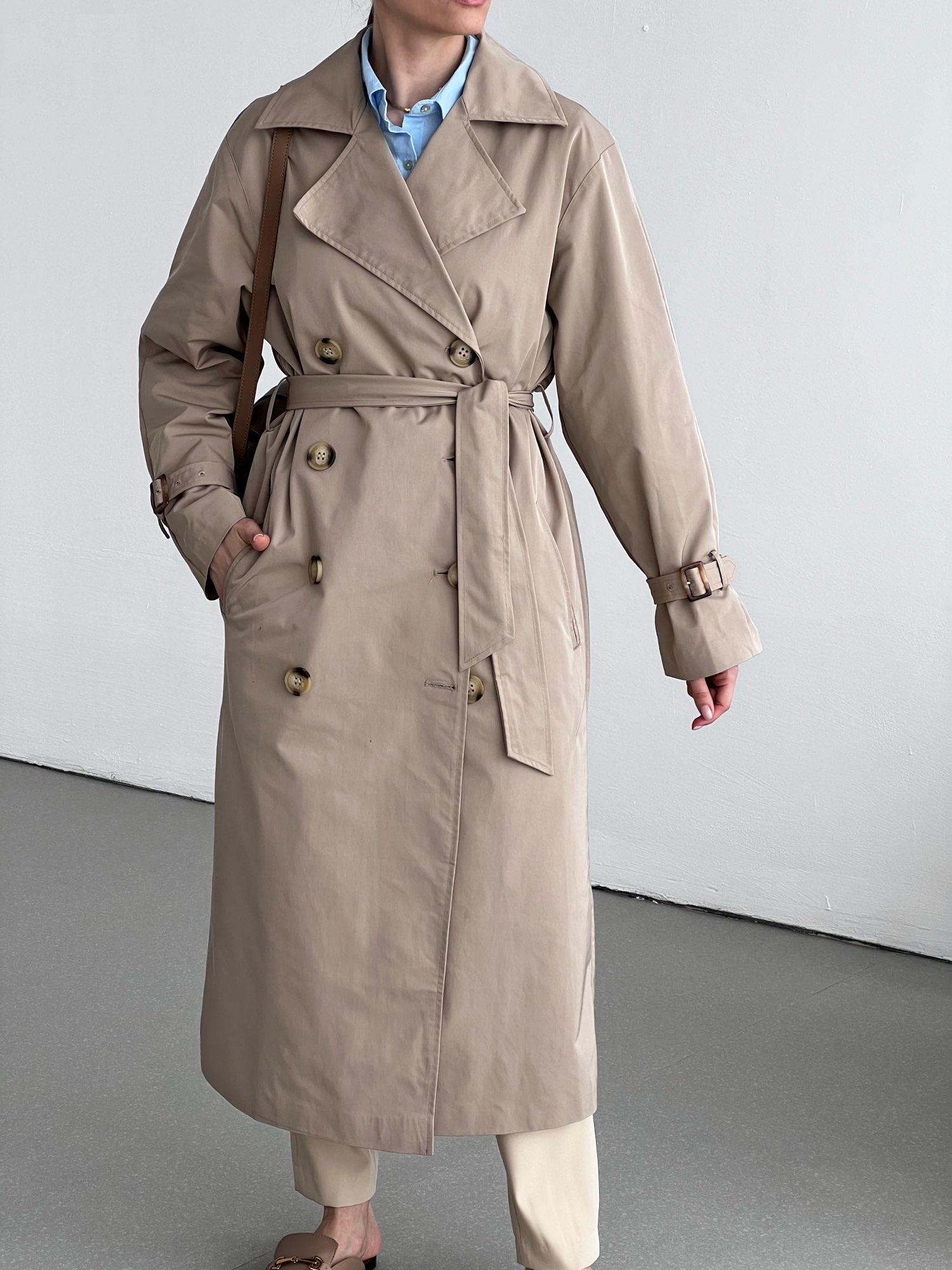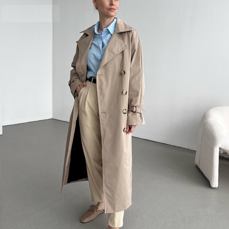 Trench-coat, long, coupe-vent avec ceinture et double boutonnage pour femmes