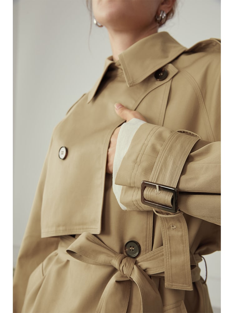 Pour une élégance sans effort, ne cherchez pas plus loin que notre trench-coat en coton beige !